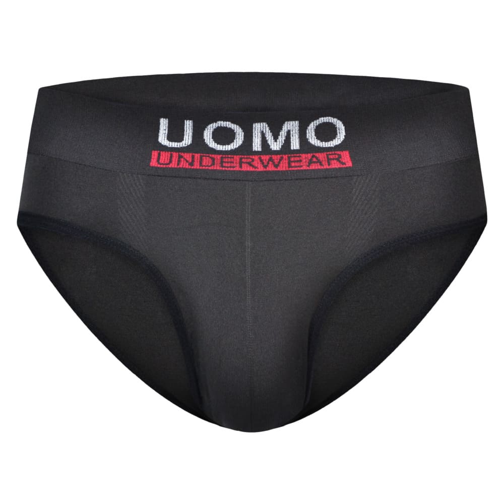 5 Pack zwarte naadloze slips voor heren van Uomo. Deze microfiber slips zijn zeer rekbaar en zitten daardoor heerlijk. Ze zijn gemaakt van 92% polyamide en 8% elastaan. Door de aangeweven elastische band heb je geen last van aftekening van je ondergoed onder je kleding. In de tailleband staat de merknaam ingeweven.